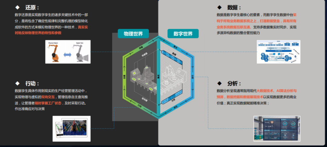 它需要先用建模工具在数字空间构建起精准物理对象模型,再利用实时物联网数据驱动模型运转,使得物理世界和数字世界可以全面建立实时互联、互通和互操作。目的是通过各种数据、模型、信息的集成,构建起虚拟实体对物理实体的分析、决策、控制能力,从而优化物理世界的资源配置效率。